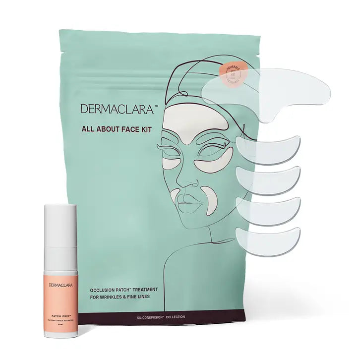 The All About Face Kit is a comprehensive skincare solution designed to target common signs of aging across key areas of the face. This kit includes (1) Forehead Occlusion Patch™ to smooth out deep expression lines, (4) Eyes & Mouth Occlusion Patches™ to reduce fine lines and wrinkles in delicate areas, (1) Patch Prep™ to clean and reactivate the adhesive properties of the patches. Together, these products work to rejuvenate, hydrate, and smooth the skin for a more youthful and radiant appearance. - Comprehensive treatment for the forehead, eyes, mouth - Boosts moisture retention and collagen production. - Enhances the absorption and effectiveness of traditional skincare products like creams, toners, and serums. - Smooths fine lines and wrinkles while hydrating the skin.