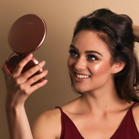 The Lumi travel mirror is the essential beauty accessory for busy women on the go who always want to look and feel their best. At 5 inches wide, it contains two large premium-quality glass mirrors, offering more clarity and detail than a regular compact. The LED lights provide a color-corrected reflection of your skin and Lumi is lightweight enough to place in your handbag, luggage, or gym bag so you can take her with you everywhere.