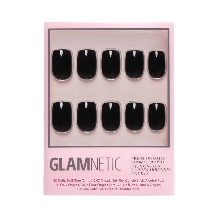 Meet your ultimate fall staple. The Jet Black Nail Set is a short squoval set with a smooth, high-gloss finish that delivers the perfect patent-leather shine. Effortlessly bold, endlessly versatile — this is your go-to for everything from edgy nights out to sleek everyday style.