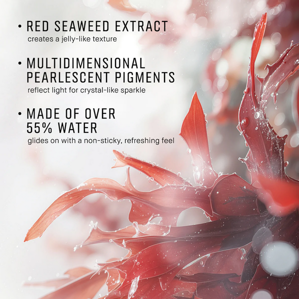 - A unique blend of red seaweed extract creates a jelly-like texture, making every swipe smooth and sensorial