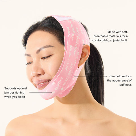 Wake up looking refreshed with the Skin Gym Morning Shed Chin Strap, designed to comfortably sculpt and support your jawline while you sleep. It helps to reduce the appearance of puffiness, ease facial tension, and enhance the appearance of more defined features for a well-rested, lifted look.