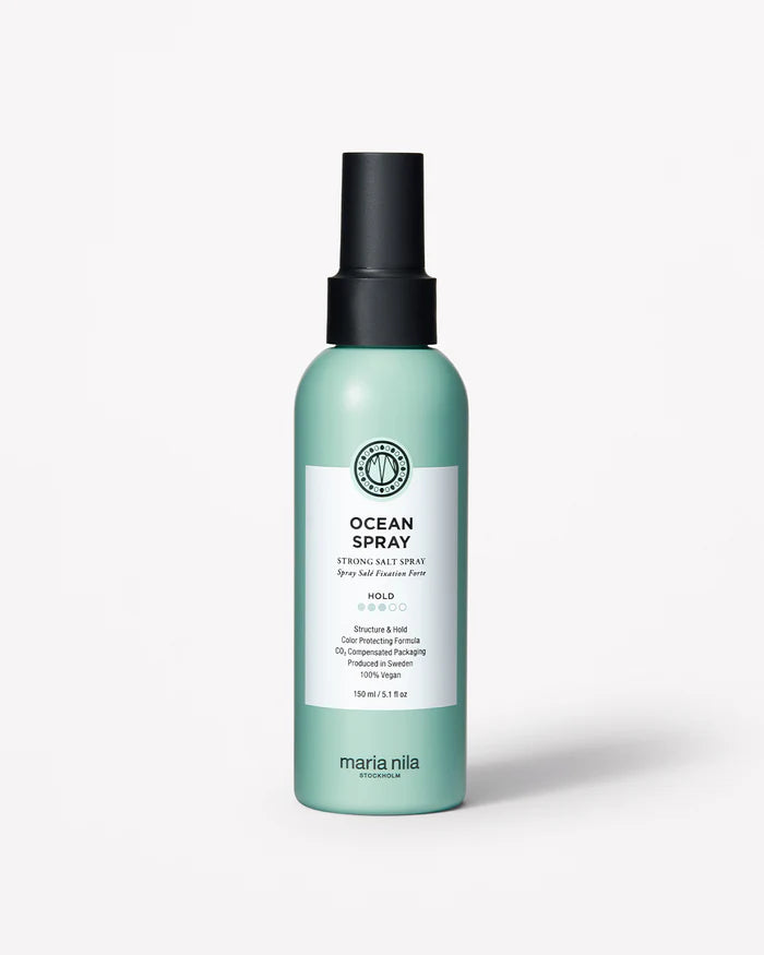 A texturizing saltwater spray that gives extra hold, structure and volume and has a matte non-sticky finish. Use in damp or dry hair when styling natural beach waves or creating long lasting updos. Ocean Spray is suitable for both longer and shorter hair and thanks to its high concentrate of natural salt, it gives a stronger hold than the Salty Mist.
