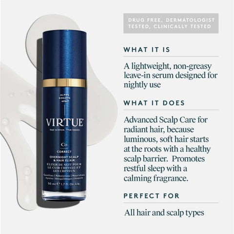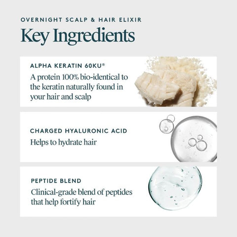 Powered by Alpha Keratin 60ku®, hydrating Hyaluronic Acid and other potent skincare-derived ingredients, the light-weight, non-greasy formula nourishes and hydrates the scalp,and helps restore the scalp barrier for healthy growth and vitality. Hair feels softer, stronger, and more radiant by morning.