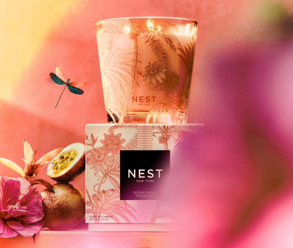 A vibrant daydream painted in luscious layers of passion fruit, strawberry, and mango, wrapped in the soft bloom of peony and hibiscus. Grounded in the warmth of cashmere woods, this scented candle is a joyful invitation to imagine your own paradise.