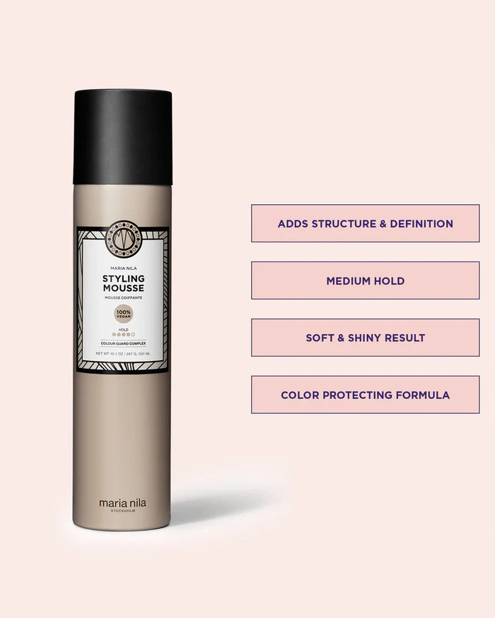 The Maria Nila Styling Mousse is a medium-hold mousse that gives your strands structure and a healthy, shiny finish. This mousse is easy to brush out and leaves the hair without any unwanted stickiness. This mousse can be used as a foundation for an updo, before straightening and curling. The Maria Nila Styling Mousse is perfect for naturally curly hair that needs extra hold. This mousse is infused with Maria Nila's Colour Guard Complex to help prevent color fading and preserve color vibrancy by protecting strands from harmful UV rays and free radicals. The Maria Nila Styling Mousse additionally features a vegan and paraben-free formula that leaves strands with a delicious scent of pear, vanilla, red apple, and strawberry.
