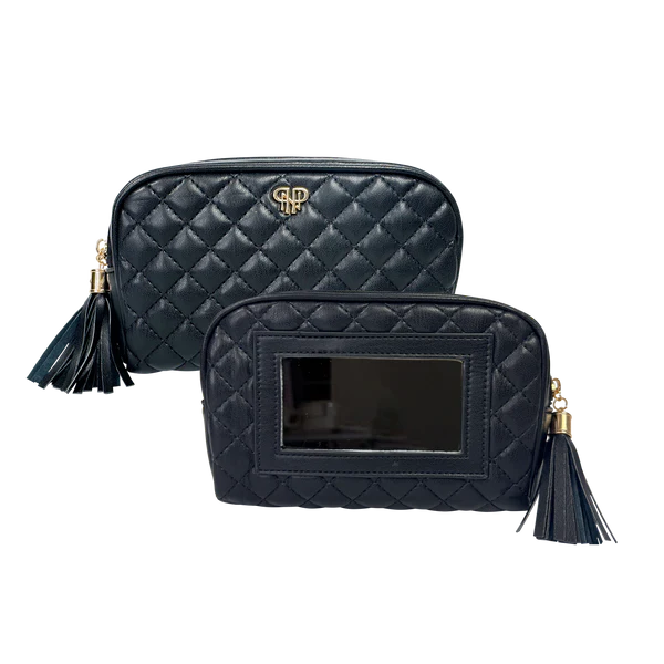 Meet the makeup bag that's as chic as it is practical - with a built-in mirror for effortless touch-ups on the go. The Glam Makeup Case in classic black Timeless Quilted blends everyday function with a polished sophisticated finish. Inside, two slip pockets and a spacious central compartment keep your beauty must haves organized and easy to reach, and the easy to clean wipeable interior is a must! Compact enough to toss in your purse, stylish enough to show off - this is the makeup bag you'll reach for every single day.