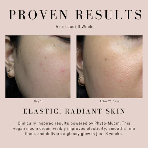 Our phyto-mucin, derived from Yam Root, replicates the cushiony texture and visible plumping benefits of traditional mucin using only plant-based ingredients. This next-generation vegan mucin innovation promotes lasting hydration, elasticity, and smoothness while staying true to clean, ethical beauty.