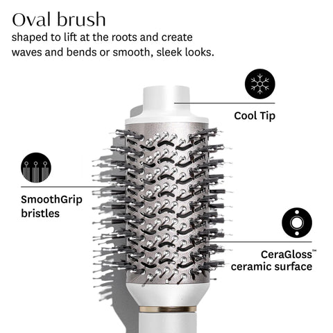 T3 Aire 360 Technology gathers hair to form curls with nothing but air, and custom-blend CeraGloss™ ceramic barrels create glossy curls that stay all day. An expertly engineered oval brush smooths, lifts, and shapes. And a SoftAire® drying concentrator delivers fast-yet-gentle drying that helps protect hair's natural moisture.