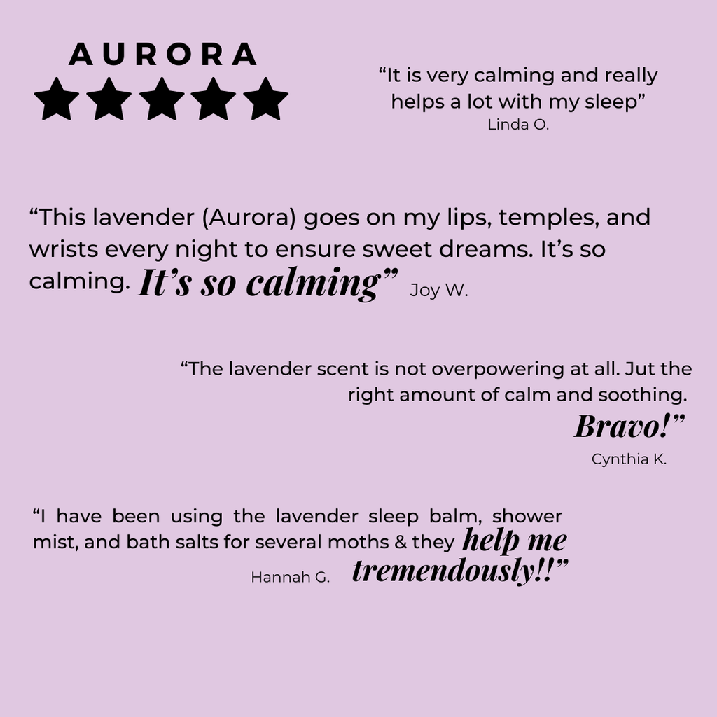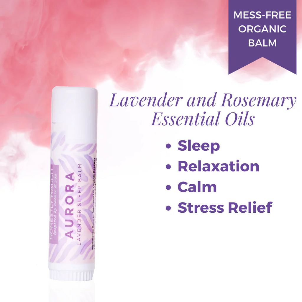Lavender Aurora Balm can help with anxiety and stress and will promote calm, relaxation and sleep.